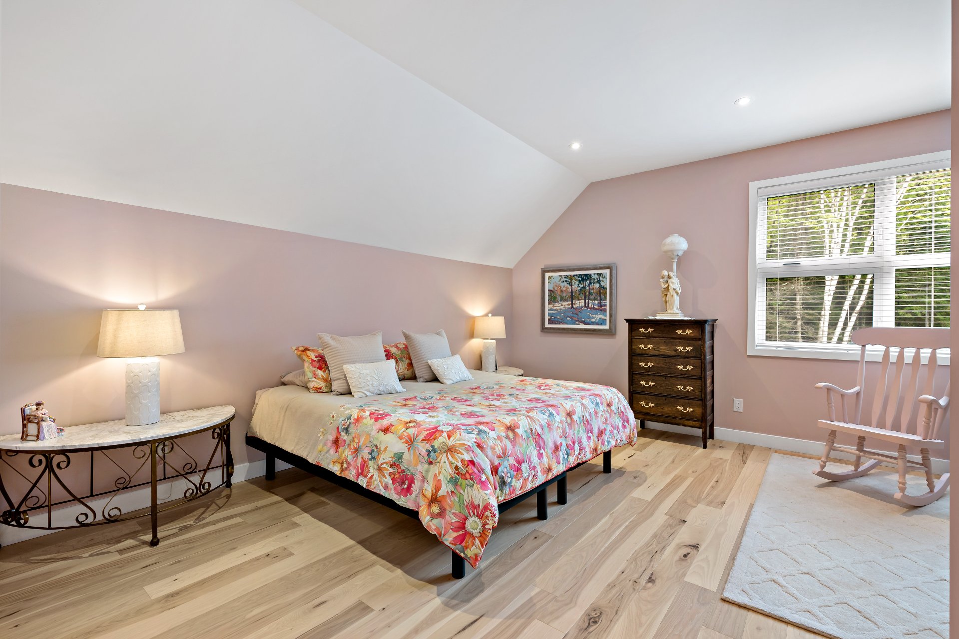 Entrée: Banc d'église foncé; Cuisine : Petit four sur le comptoir et machine à café; Chambre du RDC : tapis bleu et tables de nuit bleues; Bureau : mobilier de bureau; Chambres des maîtres : Semainier à 6 tiroirs, chaise berçante rose et tables de nuit en marbre; Balcon : La table et les chaises de jardin blanches; Garage : Le sèche bottes ainsi que la table de travail noire. Tous les cadres, portraits et oeuvres d'art, ainsi que tout ce qui n'est pas inclus.