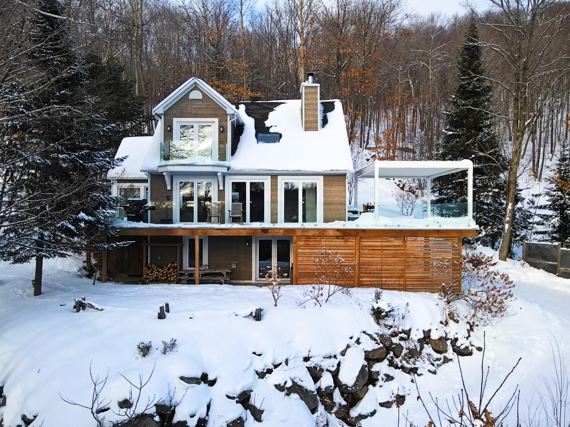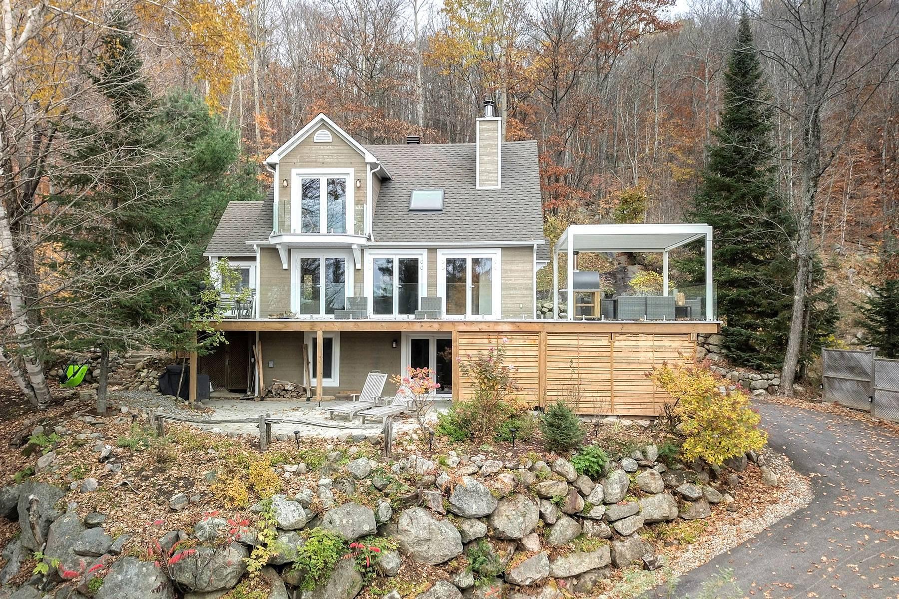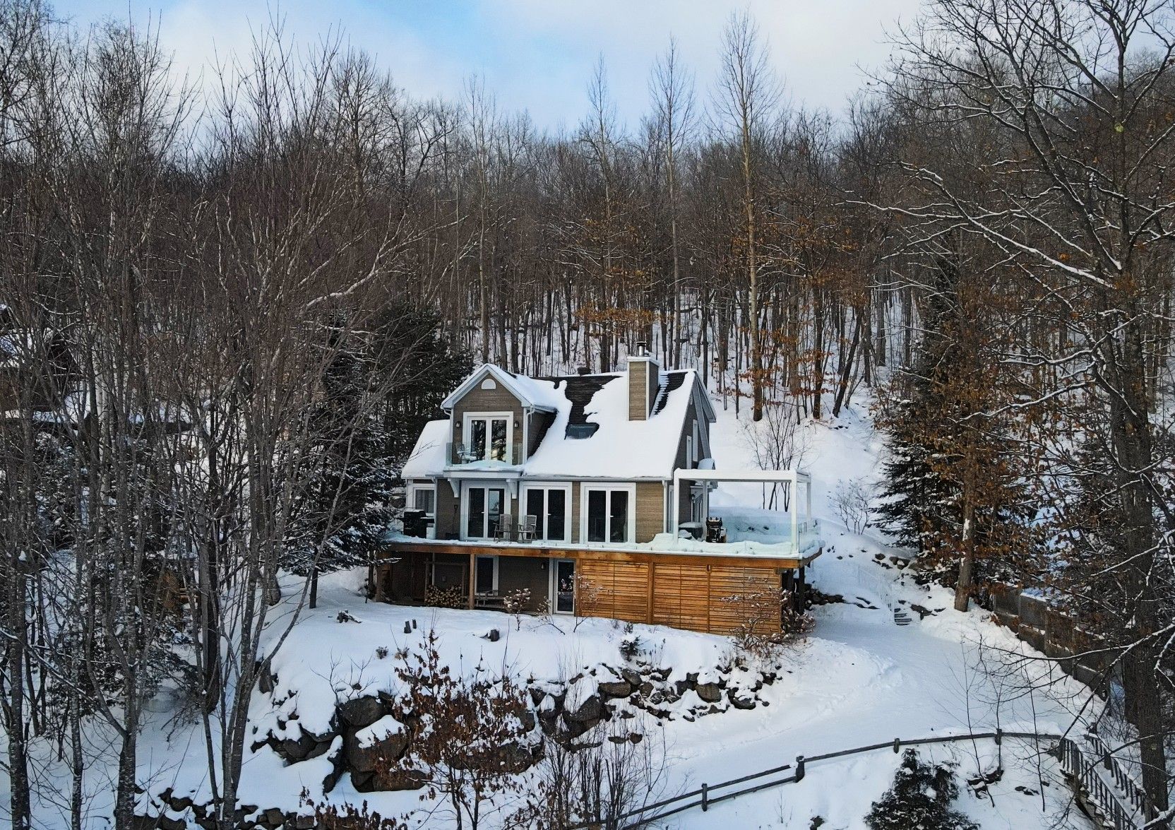Secteur A+ ; Cette maison de montagne unique offre une vue splendide sur le Lac Mercier et beaucoup de soleil. Son ambiance authentique de chalet de ski a été entièrement rénovée en 2022. Située à quelques pas du vieux village et de la plage du lac, elle est nichée sur une route privée et tranquille. Un ruisseau avec cascade se trouve juste derrière, créant un cadre paisible. À proximité de la piste cyclable du P'tit Train du Nord, et à moins de 10 minutes des pentes de Tremblant, c'est l'emplacement idéal pour une résidence principale ou un chalet. L'accès au Lac Mercier se fait par la plage réservée aux résidents à 450m de la maison.