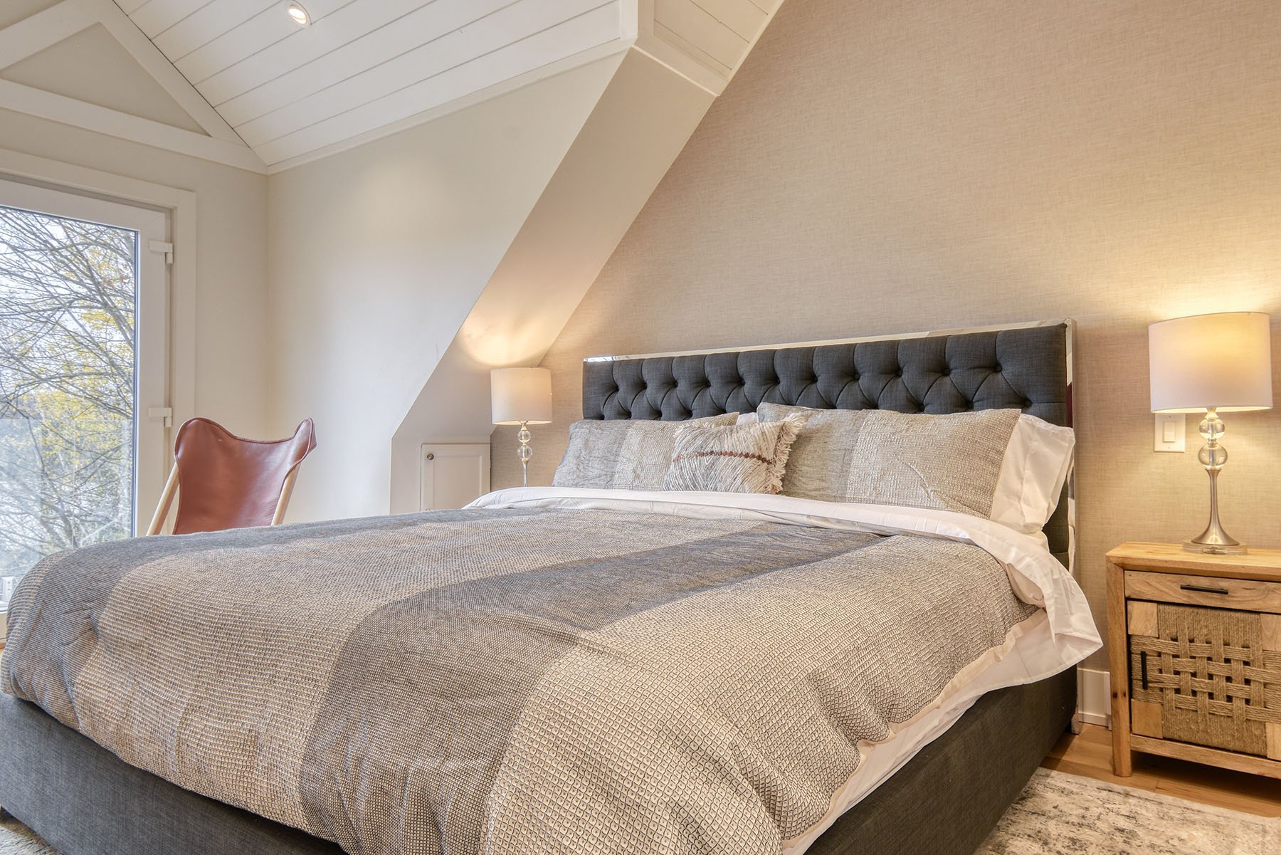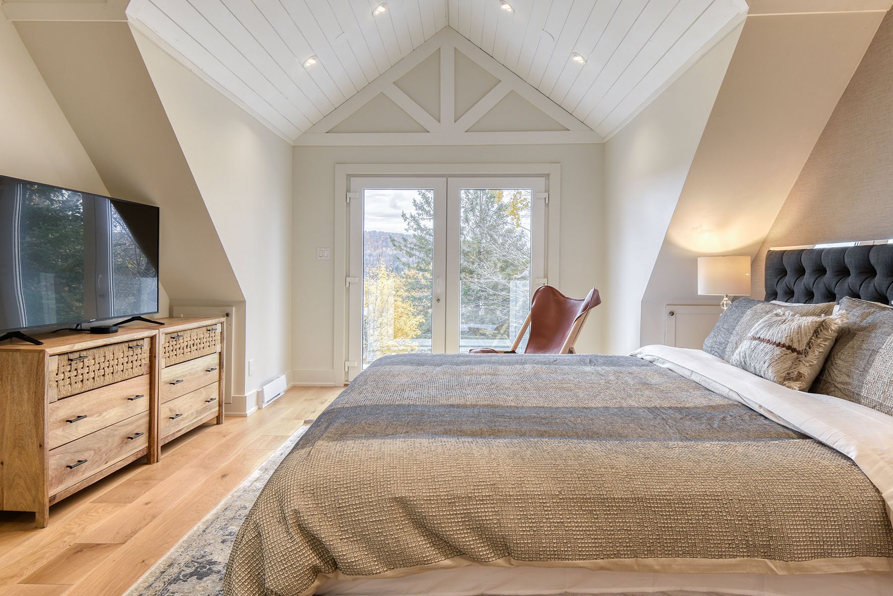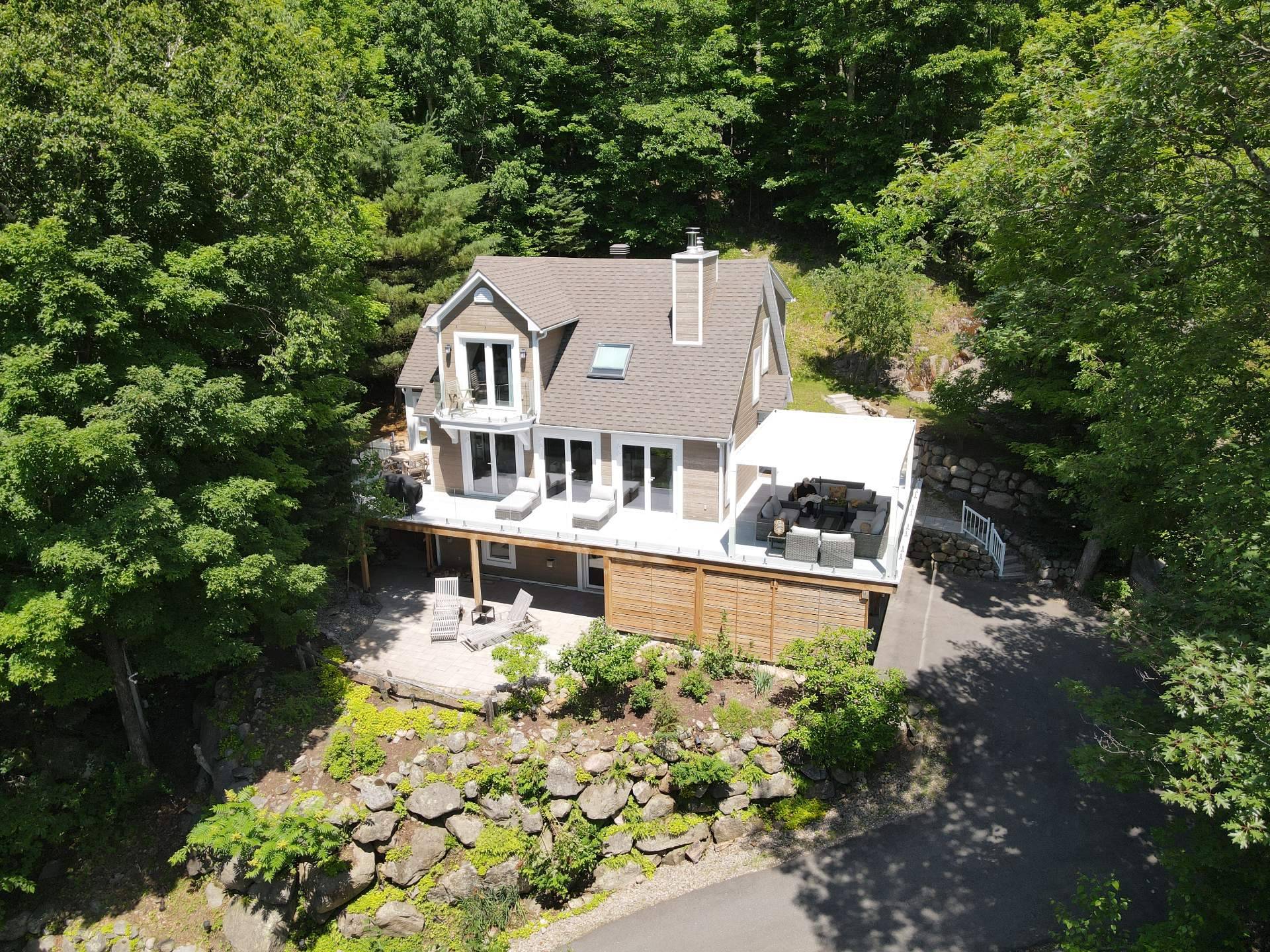 Secteur A+ ; Cette maison de montagne unique offre une vue splendide sur le Lac Mercier et beaucoup de soleil. Son ambiance authentique de chalet de ski a été entièrement rénovée en 2022. Située à quelques pas du vieux village et de la plage du lac, elle est nichée sur une route privée et tranquille. Un ruisseau avec cascade se trouve juste derrière, créant un cadre paisible. À proximité de la piste cyclable du P'tit Train du Nord, et à moins de 10 minutes des pentes de Tremblant, c'est l'emplacement idéal pour une résidence principale ou un chalet. L'accès au Lac Mercier se fait par la plage réservée aux résidents à 450m de la maison.
