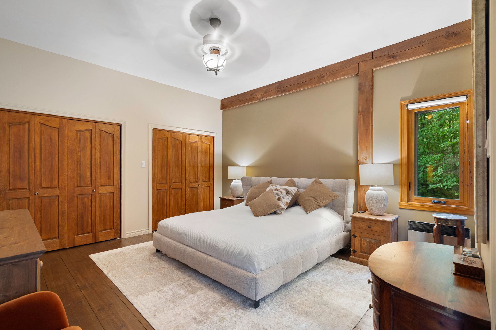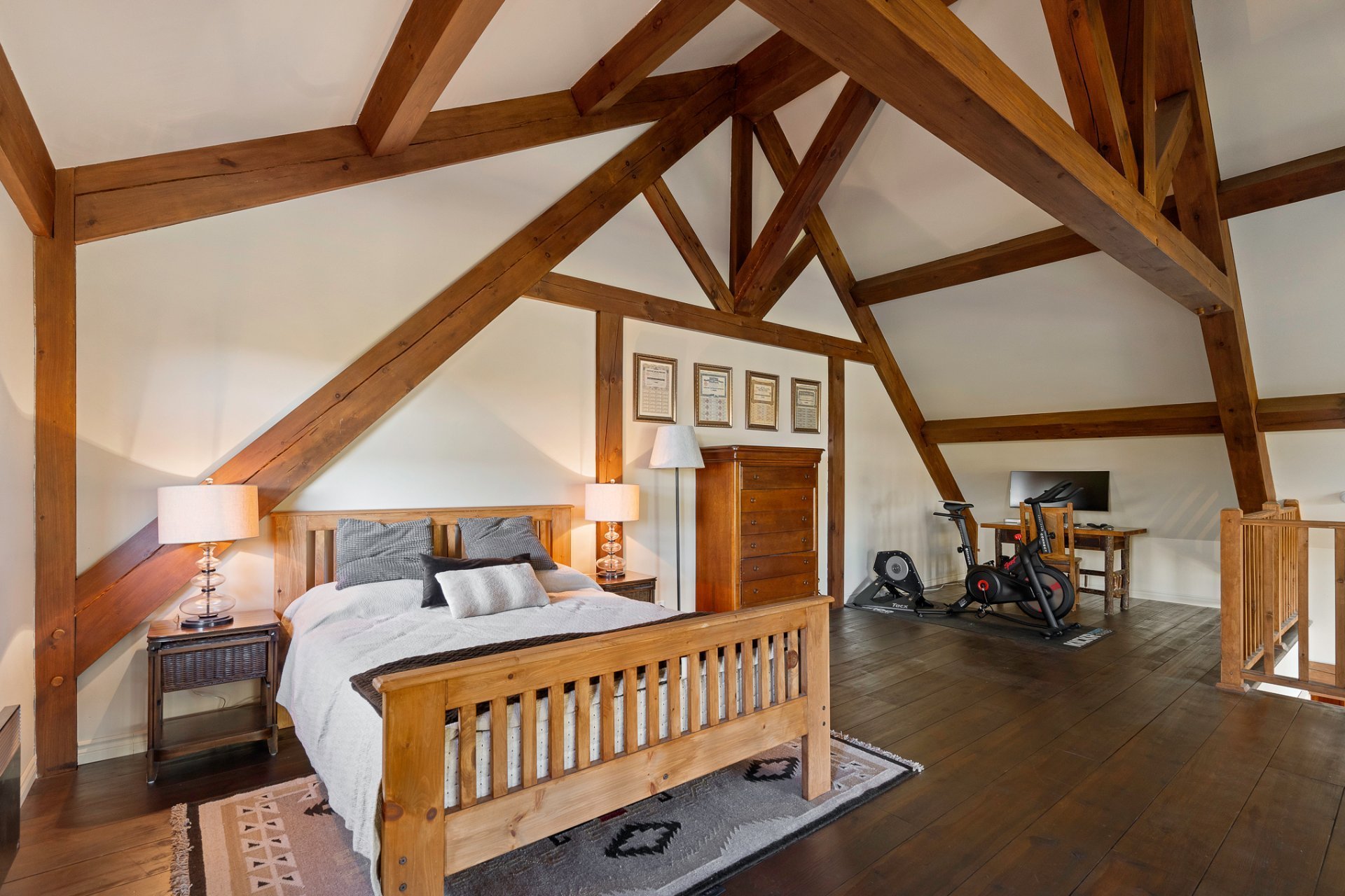 bois apparentes; , des planchers en bois franc, un foyer